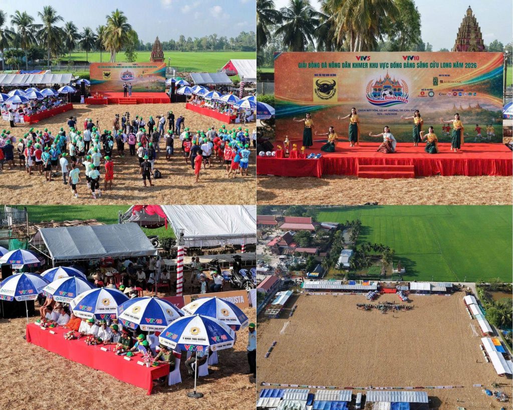 Mùa lễ hội Chôl Chnăm Thmây năm nay trở nên đặc biệt hơn khi Giải bóng đá Nông dân Khmer khu vực Đồng bằng sông Cửu Long 2026 chính thức khởi tranh tại sân chùa Bét Tôn, xã Mỹ Hương, TP. Cần Thơ. Không chỉ là một giải đấu thể thao phong trào, đây còn là dịp để cộng đồng nông dân Khmer ở Tây Nam Bộ gặp nhau trong không khí rộn ràng, gắn kết và đậm bản sắc, nơi trái bóng lăn trên sân không đơn thuần mang ý nghĩa thi đấu mà còn mang theo tinh thần đoàn kết, niềm vui và sự tự hào văn hóa.